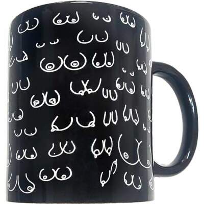 Made of high-quality ceramic, this mug features a black finish, decorated with fun erotic designs inspired by breast shapes. Its handle adds an elegant and contrasting touch, ideal for those who enjoy details with personality.