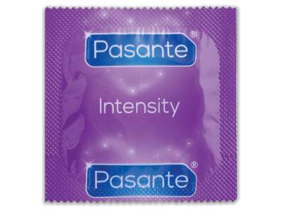 Pasante Ribs & Dots Intensity condoms are tapered, textured condoms with pronounced ribs and dots. Natural in color.