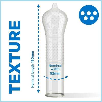 Pasante Ribs & Dots Intensity condoms are tapered, textured condoms with pronounced ribs and dots. Natural in color.