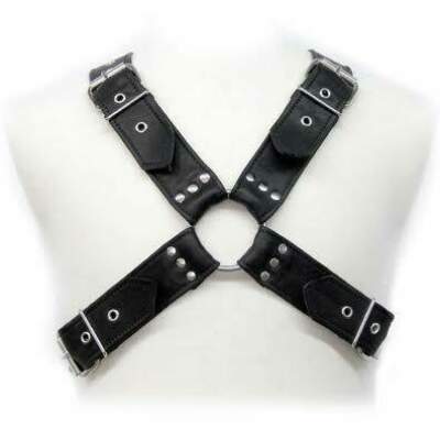 Practica el BDSM, con este Arnes leather para hombre, completamente enlazado y correas ajustables.