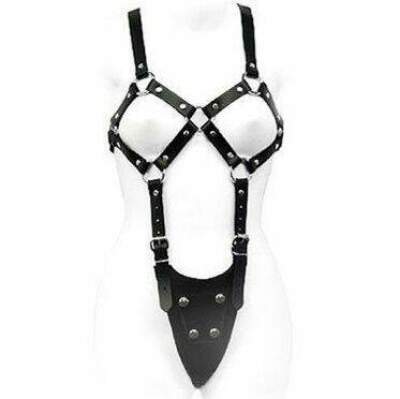 Practica el BDSM, con este Arnes leather para mujer, completamente enlazado de arriba abajo y 100% ajustable.