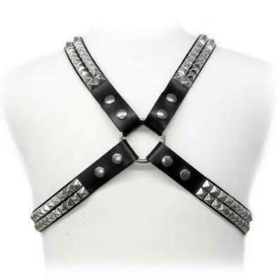 Practica el BDSM, con este Arnes leather para hombre, completamente enlazado y detalles metalicos