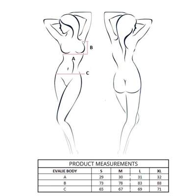The EVALIE bodysuit embodies the essence of feminine elegance and sensuality. Crafted from a refined combination of delicate lace and soft, stretchy fabric, it strikes the perfect balance between sophistication and modern minimalism. The deep V-neckline, adorned with intricate lace, beautifully enhances the bust, lending lightness to the silhouette. Sheer panels at the front add a daring touch, while the soft underbody ensures impeccable fit and comfort.