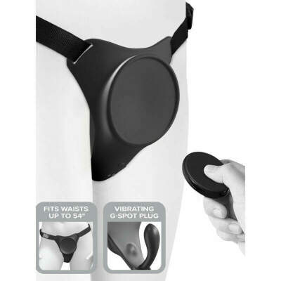 - Cuenta con una placa de cuerpo de silicona vibrante con conector G-Spot, respaldo acolchado, hebillas ajustables, control remoto recargable y cable de carga USB