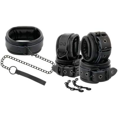 Are you looking for a one-size-fits-all collar, handcuff and leash combination that's strong enough to withstand the most intense play? Look no further. The Darkenes Leather Collar and Handcuffs are comfortable, but they are also incredibly secure, featuring premium leather straps with elegant stitching along the straps! With the straps for the handcuffs and the snap closures for the collar, adjusting its size is very easy and fits almost any size. The clip on chain holders and