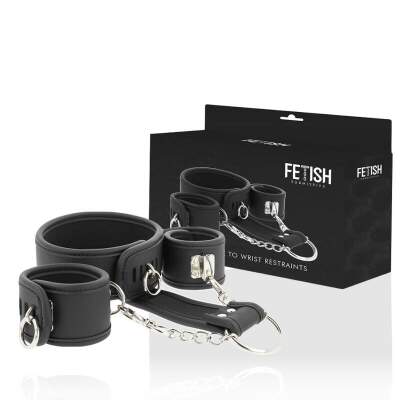 FETISH SUBMISIVE Presents this set of vegan leather neck and wrist cuffs with nickel-free metal! Lock up your lover with these sexy, effective and comfortable handcuffs. A classic accessory for your bondage games.