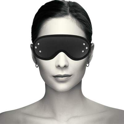 This mask is secured with a comfortable elastic fabric strip. Made from vegan leather.