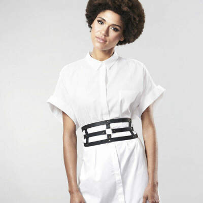The strap located in the middle of this accessory hides a secret: untie it from your waist to reveal it. Start by releasing this strap from your body, as you see it divides into two; Unhook the extension from the left strap. Continue unclipping at the front of the belt, both left and right ends of the vertical straps.