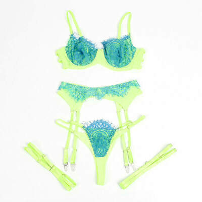 Modelo: DML-D-242653-SUBBLIME - 955328 BRA SET WITH LACE AND GARTER LINES GREEN AND BLUE L/XL