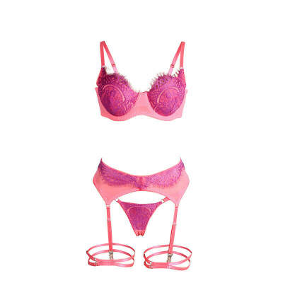 Modelo: DML-D-242654-SUBBLIME - 955359 SET OF BRA WITH LACE AND GARTER LINKS PINK AND PURPLE S/M