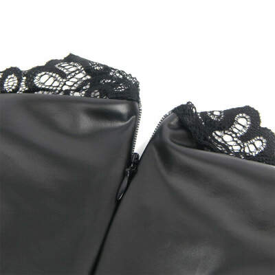 This spectacular design fuses the elegance of floral lace with the visual impact of synthetic leather (PU leather), creating an irresistible contrast between the delicate and the daring. The vinyl effect material gives it a seductive and rebellious touch, while the lace details add femininity and sophistication.