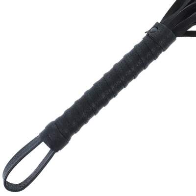 DARKNESS - BLACK BONDAGE WHIP WITH LEATHER HANDLE