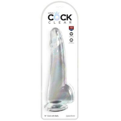 King Cock Clear combines a translucent dildo with a realistic penis design. The luminous clarity and realistic shape will fulfill all your fantasies! With its flexible shaft, detailed veins and defined head, King Cock Clear will attract. your senses visually and physically. Powerful suction cup base sticks to almost any flat surface and makes all dildo harnesses compatible