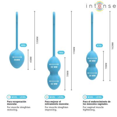 • Complete pack of 3 Kegel balls: each with a different weight and size for progressive progress.