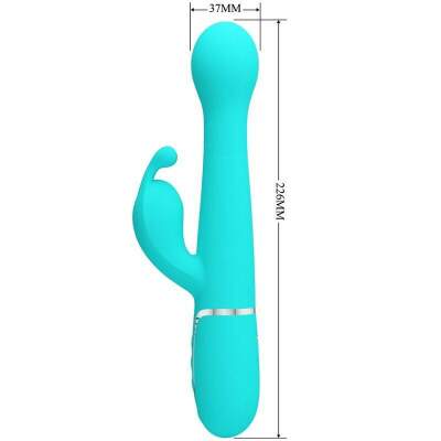 Designed for maximum pleasure, stay in bed with the Pretty Love Rabbit Vibrator. With powerful twin motors, one located at the tip and the other on the outer arm, we promise you'll find your perfect vibration as 7 vibration intensities and rhythms bring you to a powerful blended climax. With a single row of rigid beads that travel up and down in an exciting intimate massage, enjoy three speed settings while constantly rubbing your sensitive sweet spot. For added pleasure, press the Burst Climax button to explore your incredible, earth-shattering orgasms.