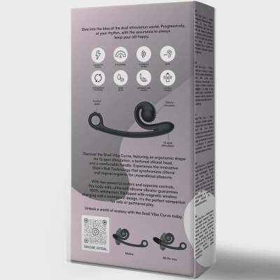 Discover the Snail Vibe Curve, featuring an ergonomic shape for G-spot stimulation, a textured clitoral head, and a comfortable handle. Experience the innovative Slide'n'Roll Technology that synchronizes clitoral and vaginal prgasms for unparalleled pleasure.
