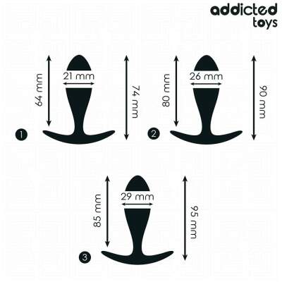 This set includes three anal plugs of different sizes, allowing for gradual adaptation for users of different levels, from beginners to more experienced people. Each plug has a smooth and curved design, which facilitates a smooth and comfortable insertion. The anchor-shaped base ensures safety and comfort, preventing over-insertion and allowing for easy removal.