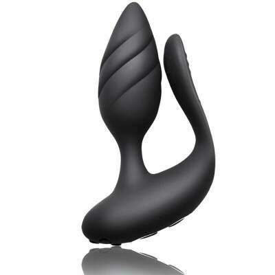 Cocktail is a powerful dual motor toy for couples designed to pleasure the anus and vagina while stimulating the penis during sex. Close your eyes as the velvety-touch silicone and slim neck of the firm-contoured dilator rub their way across your body as the long, flexible part slides inside, stimulating your vagina and penis with each deep vibration and rhythmic thrust. Switch controllers to choose levels of pleasure and have your hands free to explore and pamper each other, or simply take control and decide the pace yourself. It's time to experience double the pleasure!