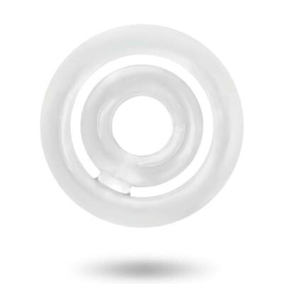 This two-ring set is specially designed to be used simultaneously at the base of the penis and at the base of the testicles.