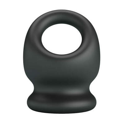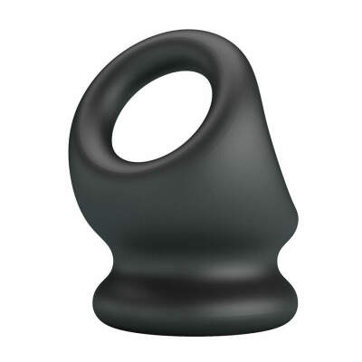 This cock-and-ball ring is made of a soft, stretchy, and skin-safe silicone material. The thick design of this accessory is intended to anchor securely around the erection, gently pulling the testicles down to stretch the scrotum for a pleasurable swinging sensation.