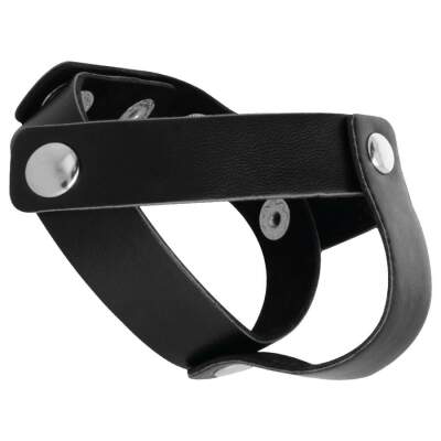Decorated with silver metallic details and chrome rivets. Extend your pleasure and resistance with this easy and adjustable leather ring