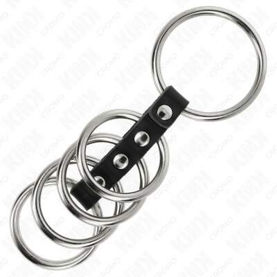 KINK - 5 PENIS RINGS 3.7 CM TO 5 CM METAL CONNECTED BY LEATHER