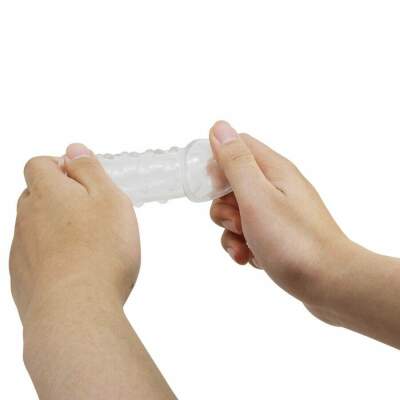 Get your penis stronger with amazing cock sleeve! With a silky-soft TPE material, the cock sleeve is soft and stretchy but strong enough to stay on.It can fit every penis girth,hugging close to the skin, trapping the blood in your penis and helping you achieve longer lasting and stronger erections. It is also suited for progressive potency training and prolonging the sweet time by reducing the stimulation on sensitive parts of the glans,delaying the ejaculation. Just slip this penis extension sleeve over your cock and give her the ultimate satisfaction!