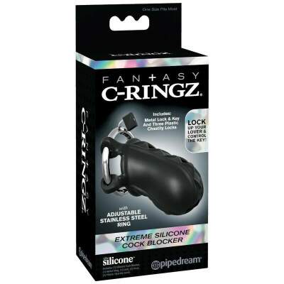 Put your lover on lockdown with the Extreme Silicone Cock Blocker! Fasten the lock, hide the key, and make sure your partner keeps his cock where it belongs! This high-end chastity cage is made from our body-safe, phthalate-free Elite Silicone and is designed for comfortable long-term wear. The chastity device is lightweight, flexible, and breathable, but once the lock is applied, your subject can’t get hard no matter how aroused they are! The Extreme Silicone Cock Blocker features a sturdy stainless steel adjustable ring that wraps around your subject’s entire package, leaving his shaft locked inside the breathable silicone sleeve.