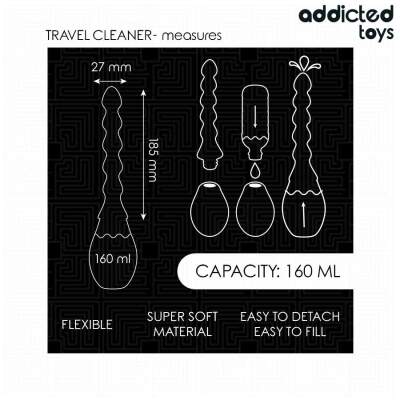 The Addicted Toys Model 2 Travel Cleaner is an ideal choice for those who want to keep their sex toys in perfect hygiene condition while away from home or traveling. With a practical and functional design, it offers a simple and effective way to clean your toys quickly and safely.