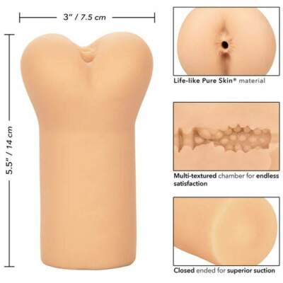 Realistic pure skin material | Soft, tight and elastic | Multi-texture chamber for infinite satisfaction | Closed end for superior suction | Hygienically superior and maintenance-free