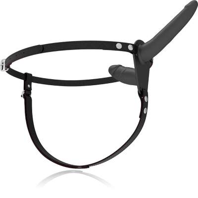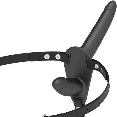Double penetration harness adjustable to any hip size, even the largest. The dildo is made of premium silicone.