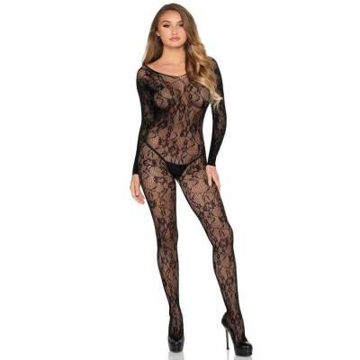 Be captivated by this super-stretchy floral lace bodystocking. This model hugs the body, highlighting your features from head to toe. Thanks to its neckline, it can be worn over the shoulders or in a bardot style. This bodystocking does not have a crotch opening.