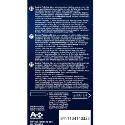 Control's finest condom. Its super-thin thickness makes it easy to enjoy extreme sensitivity, while its ergonomic shape favors optimal adaptability. Made of latex, reservoir and lubricated.