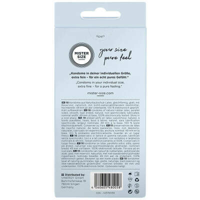 More sensations with your individual condom size Thanks to MISTER SIZE, problems with condoms are a thing of the past. Once you have found your ideal size and everything fits perfectly, you can Experience the pure sensation of sex again, letting go and losing yourself in each other.