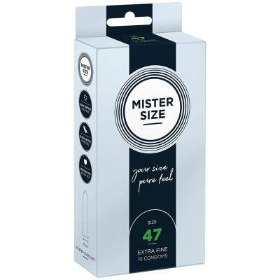 The MISTER SIZE 47 is the smallest of our seven sizes. However, this doesn't have to be uncomfortable for you. The slimmer penis allows for more flexibility during sex and can give you the best sensations; especially with the right preparation.