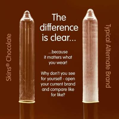 Introducing our new chocolate flavor 8-pack, featuring a sleek, ready-to-use design and up to 33% more condoms than the market leader. Appeal to those looking for a fun, high-quality intimate product with Skins chocolate flavor condoms. These individually wrapped condoms combine pleasurable taste with superior protection, making them the ideal choice for adult product stores, pharmacies, and wellness retailers. These Skins condoms are a great way to combine two loves: sex and chocolate. Theyre lubricated and have a delicious chocolate aroma thats truly tempting, and they taste like chocolate too. Like all Skins condoms, theyre made from high-quality, dermatologically tested latex, giving you the protection you need.