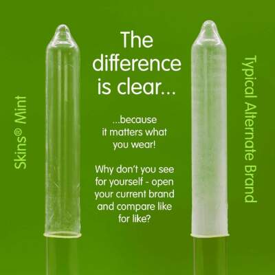 Introducing the Skins Mint 8-Pack - a sleek, retail-ready format that offers up to 33% more condoms per pack than the market leader, delivering exceptional value and standout shelf appeal. Designed for a more pleasurable oral sex experience, these condoms have a cool mint flavor and are made from premium natural latex for clarity, strength, and a natural feel. Ultra-thin for greater intimacy, they are designed to feel like a second skin, while providing reliable protection and comfort.