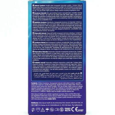 The Skins Natural 8-Pack is designed to deliver premium quality and value, offering a ready-to-use format with up to 33% more condoms per pack than the market leader. Ideal for retailers looking for a reliable, high-performance essential product that combines discretion, comfort, and quality. Made from high-quality natural latex, Skins Natural condoms are transparent, strong, and ultra-thin, offering a skin-like feel. Lightly infused with vanilla, they eliminate the typical latex odor, improving user comfort and confidence.
