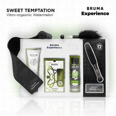 A tropical fantasy where juicy meets daring. This pack combines the sweet taste of watermelon with a liquid vibrator that transforms every caress into a surge of pleasure. Natural lubricant, oil for skin-to-skin exploration, a feather for teasing, and a blindfold for surrender. Perfect for warm nights and eager bodies.