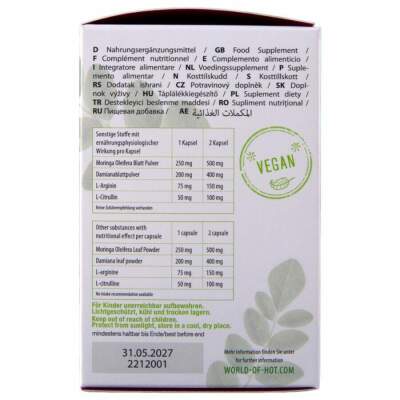 - Natural Ingredients: Contains BIO Moringa and Damiana, a natural aphrodisiac from South America.
