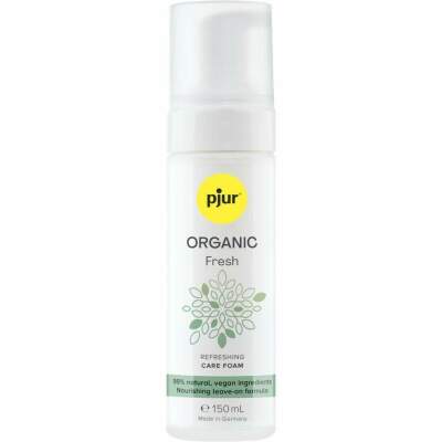 REFRESHING FOAM - Feeling fresh is easy: pjur ORGANIC Fresh turns any tissue into a soft, moist cleansing wipe instantly, so you can cleanse, care for, and refresh your skin without rinsing. The fragrance-free refreshing foam is ideal for daily care and freshness of your external intimate area, leaving you with a long-lasting feeling of cleanliness whenever you need it.