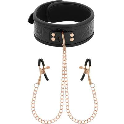 Ready for maximum pleasure ?, linked by a silver chain to nipple clamps. An exciting bondage game especially for them. The clamps and the collar are adjustable both in measure and tension. It is perfect for stimulating the nipples and many other sensitive areas.