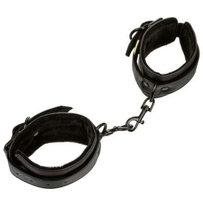 - Totally adjustable wrist cuffs with secure buckle closures | Universal clasps and D-rings with swivel design for full dexterity | Soft and plushy interior with a vegan leather exterior | Double padded, double stitched | Functional, durable and textured design