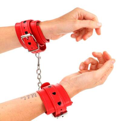 Modelo: DML-D-241055-KINK - RED WRIST RESTRAINTS WITH BLACK HEART INLAY ADJUSTABLE 21-28 CM X 5.5 CM