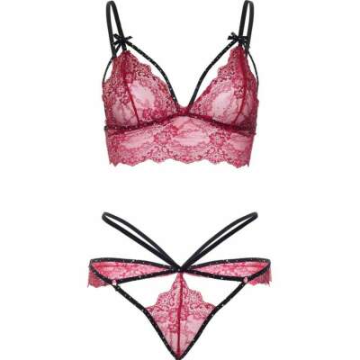 The matching thong, also designed with strappy details, perfectly complements the bralette, creating a balance between delicacy and boldness. Its cut naturally enhances your curves, while the soft lace offers comfort and a flawless finish. This set is perfect for those looking for striking, refined lingerie with an extra touch of sparkle.